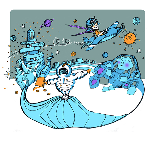 Me enfoco en temas metafísicos, místicos, chamánicos y de conciencia. Me gusta componer con manchas sueltas y desprolijas combinadas con dibujo detallista. Y sobre todo mucho, pero muuuucho color.